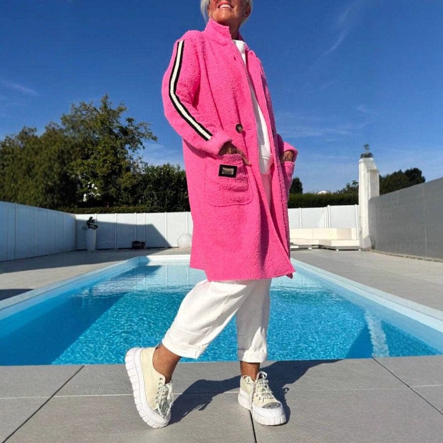 Disponible en rosa, blanco, marrón, beige, camel y naranja, se adapta a tu estilo, desde el más clásico hasta el más atrevido 🤎. Su corte recto favorece a todas las siluetas y su tejido cálido lo convierte en el aliado perfecto para los días fríos, sin renunciar al estilo.